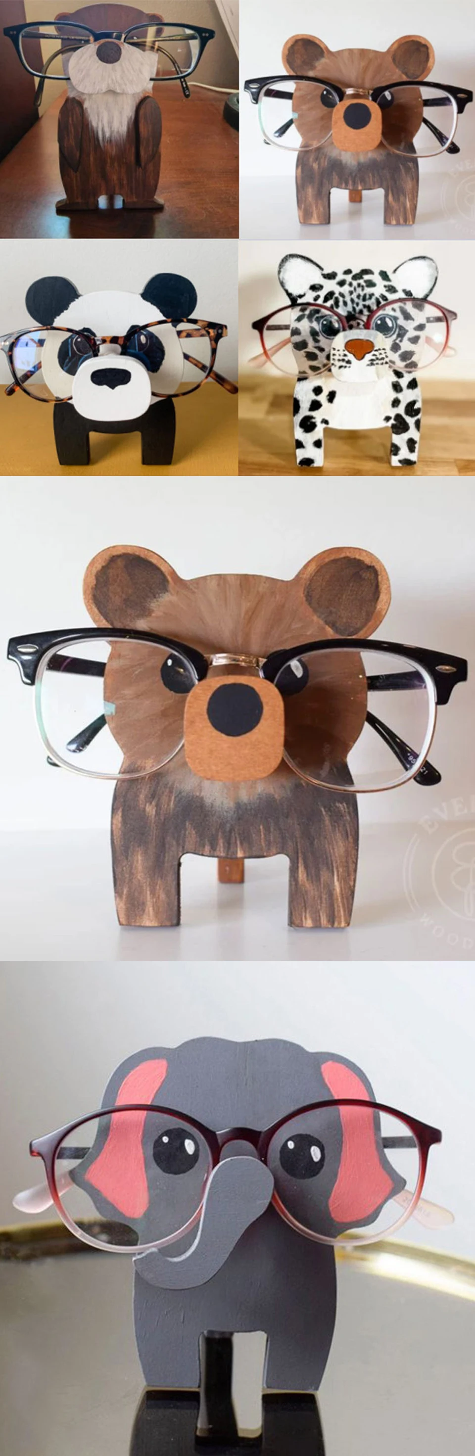 [Hochwertige Materialien]-Tier brillen rahmen sind hand gefertigt mit Naturholz, langlebig, leicht, exquisite Handwerks kunst und lebensecht. Die Verarbeitung ist akribisch und die Modellierung linien sind unterschied lich. Wird nicht viel Platz einnehmen.